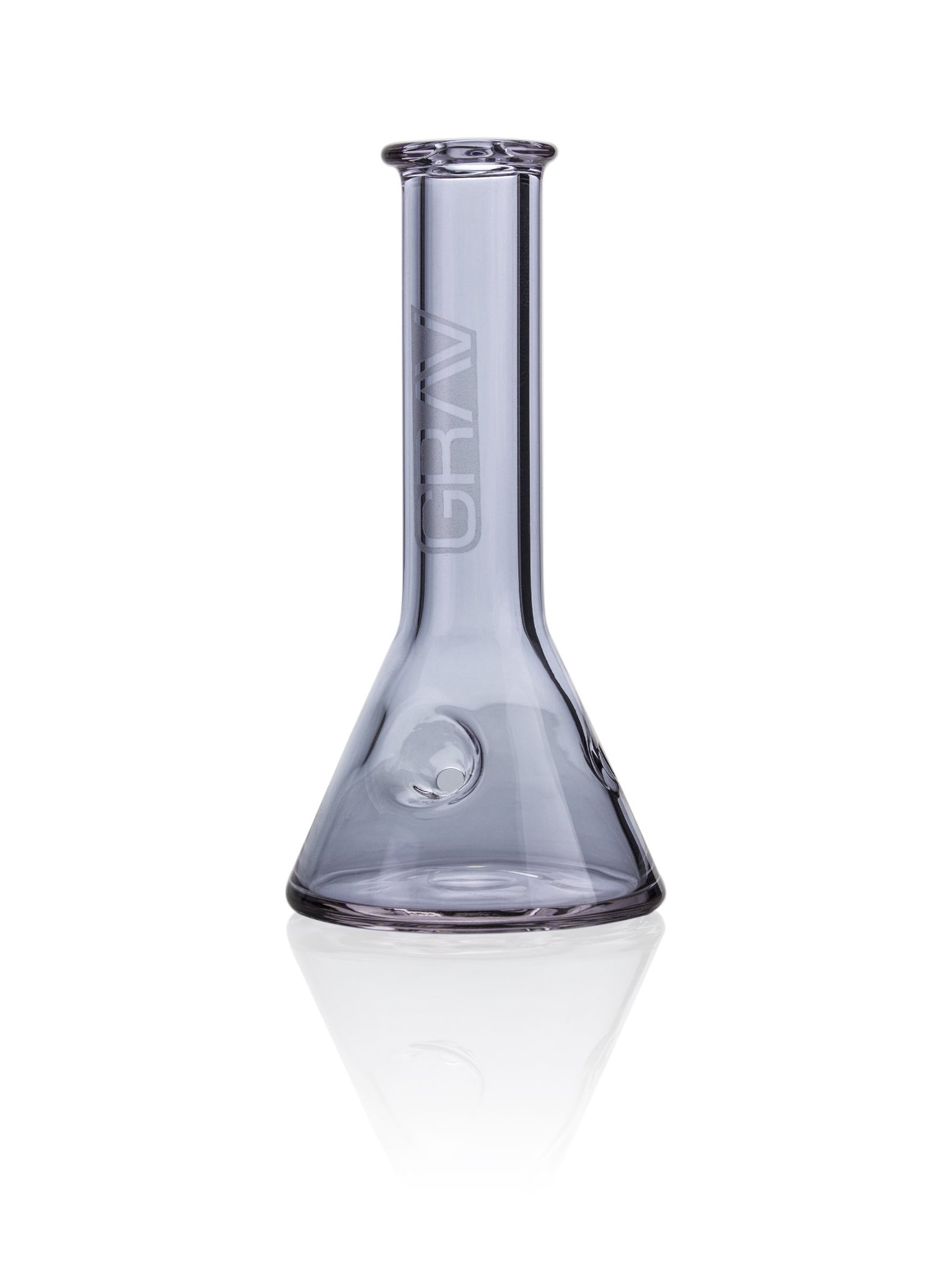 GRAV Labs is at it again with a radical new spin on an iconic shape in glass – the classic beaker... transformed into a hand pipe! Replacing where a stem might be on a traditional beaker bong with a low-profile flower bowl, this stripped down and miniaturized beaker functions as a dry spoon pipe. In addition to its funky colors and shape, it balances perfectly upright to prevent from rolling away and showcasing its unique shape and colors!