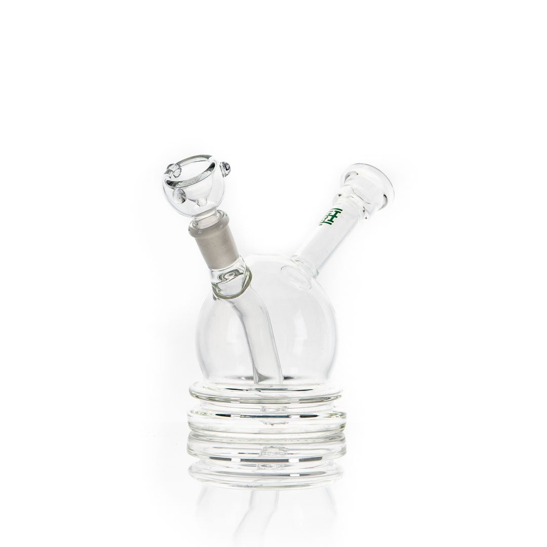 The Eggshell Bong from HEMPER is a straight shooter of a waterpipe. With a boiler dome top and a simple 4-slit diffuser downstem, the percolation potential of this little table top bong will provide reliably-rich rips with no splashback! Add the 45 degree angle mouthpiece and downstem and splashback a thing of the past.