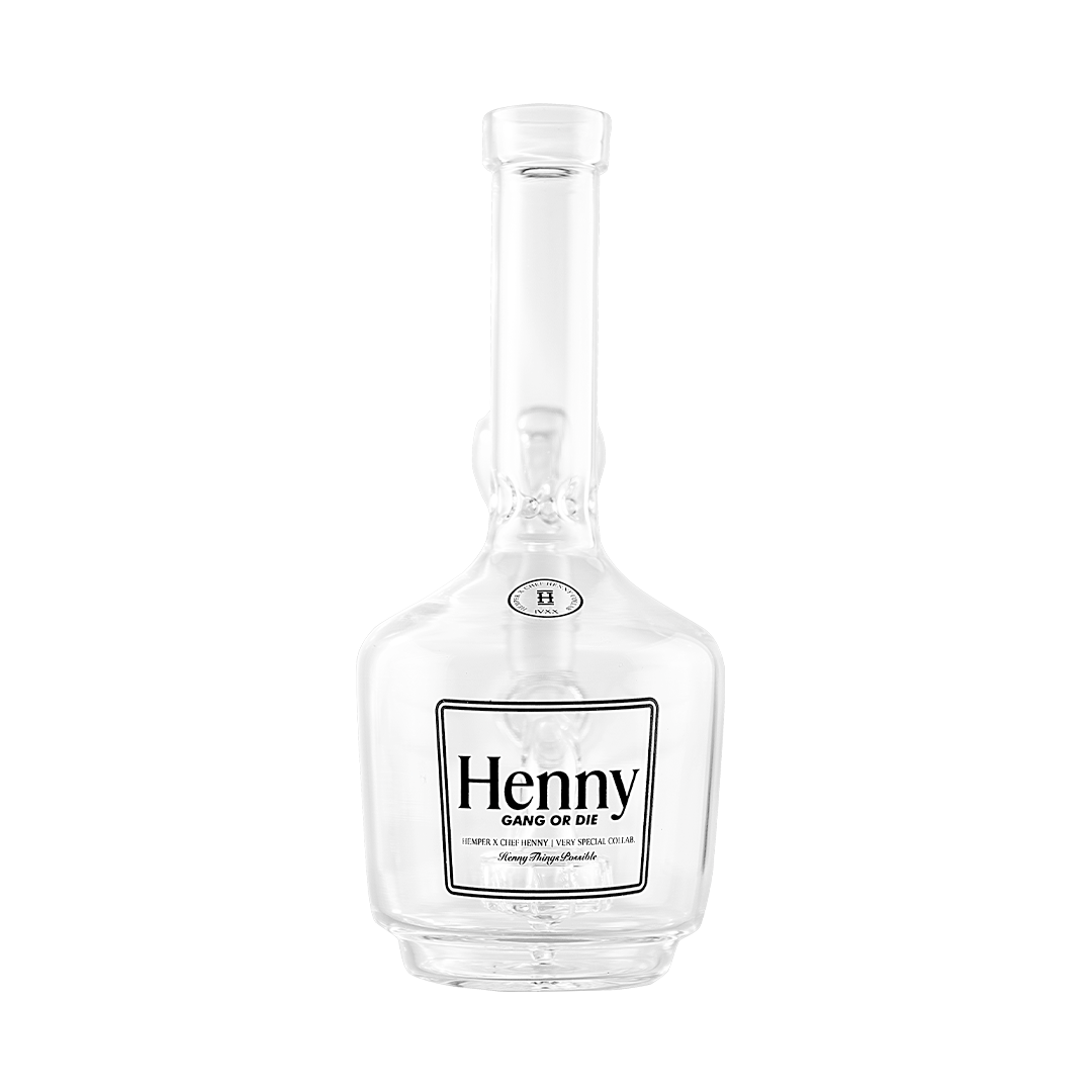 Since its initial release in March 2018, the HEMPER Henny Gang or Die rig has remained both a team and a fan favorite. For good reason – its modeled an iconic bottle that certainly draws you in but its the function that makes this piece a winner. Made from extra thick glass, featuring a base mounted showerhead perc, and an ice catcher, it's not just rugged, its as smooth as the bottle it resembles.